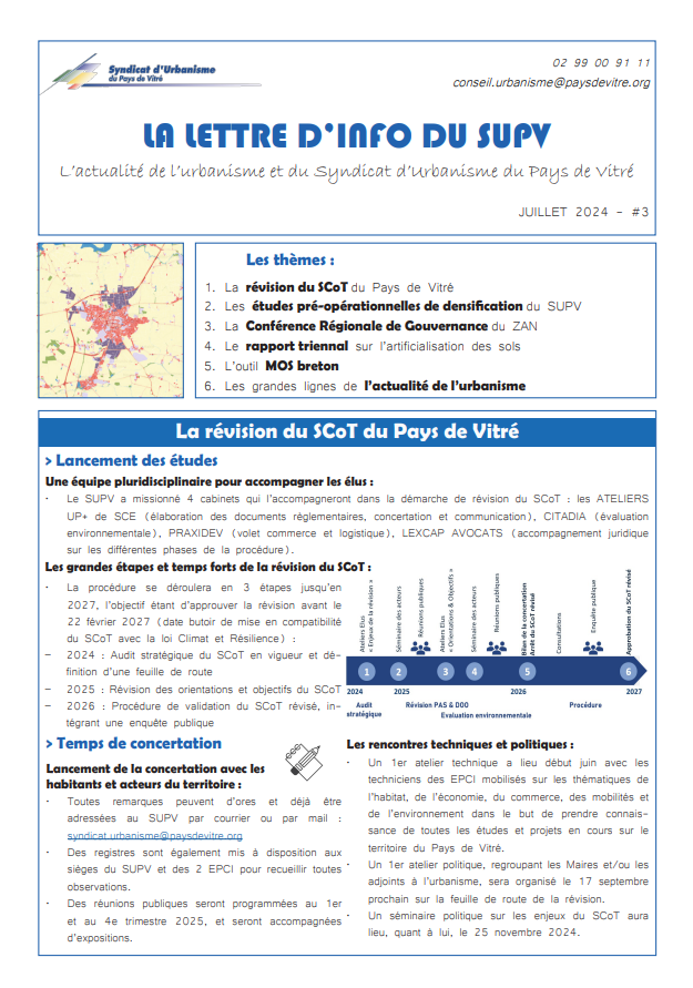 Les lettres d’info du SUPV permettent d’informer l’ensemble des partenaires des travaux et réalisations menés par le SUPV et de donner les grandes lignes des sujets d’actualités liés à l’urbanisme.
