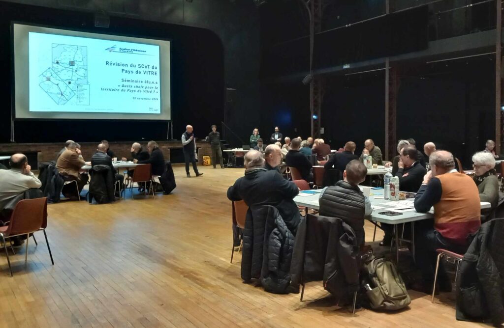 Le 25 novembre 2024, les élus du territoire et membres du Conseil de Développement se sont réunis à Vitré pour un séminaire dont l’ordre du jour était « Quels choix pour le territoire du Pays de Vitré ? ».
