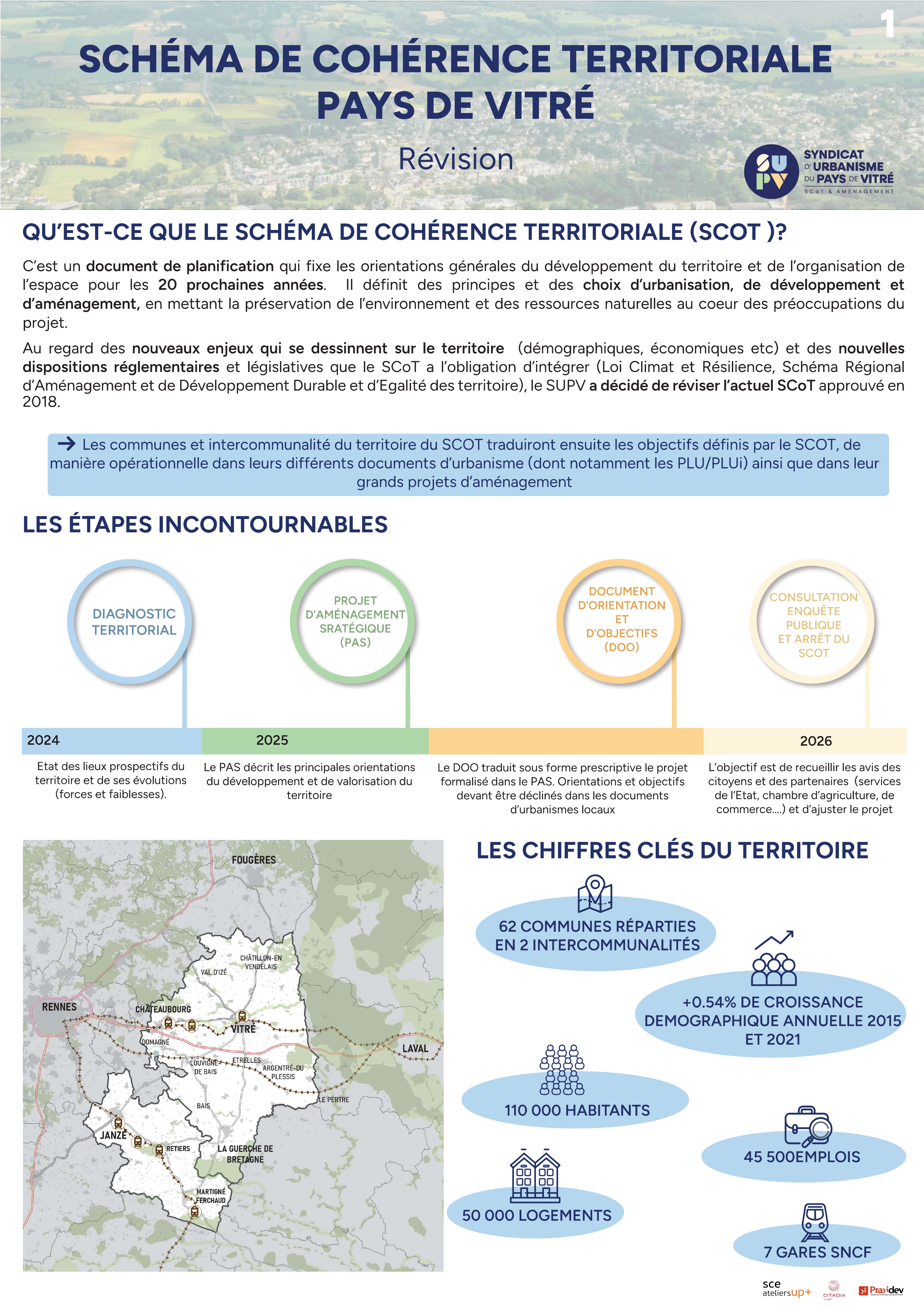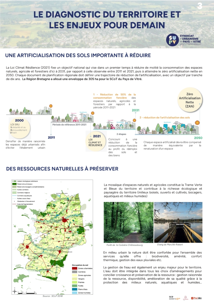 - Pour adapter le territoire aux transitions écologiques, climatiques et démographiques, le Pays de Vitré doit s’inscrire dans une logique de ménagement de ses ressources naturelles et de son développement urbain, avec notamment la mise en place de stratégies de développement orientées vers une remobilisation des espaces urbanisés et un cadre de vie de qualité.