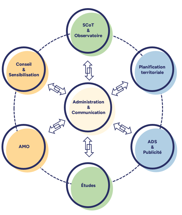 Le pôle Planification territoriale est chargé du suivi des documents de planification communaux (PLU et carte communale) et intercommunaux (PLH, PMS, etc.) et de la rédaction des avis sur leur compatibilité au SCoT. Certaines demandes de permis (projets commerciaux, opérations de plus 5 000 m² de surface de plancher, etc.), sont également soumis à avis.